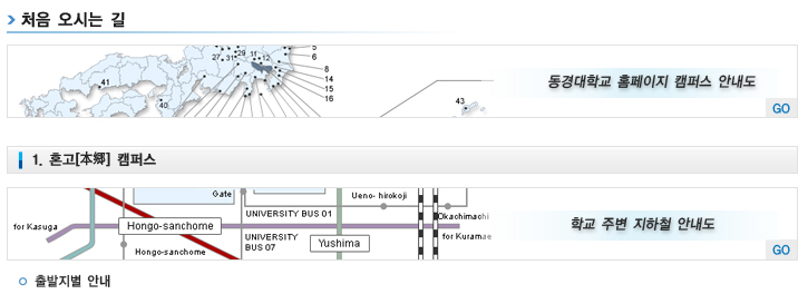 ③ JR동경역에서 지하철 마루노우치[丸の内]선(이케부크로[池袋]방향)으로 갈아탄 후 혼고산쵸메[本郷三丁目]역 에서 하차